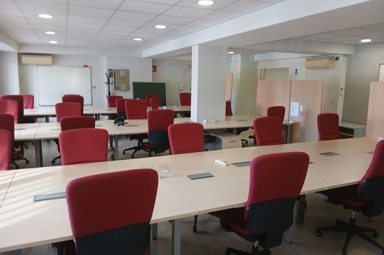 Oficina exterior equipada para empezar a trabajar con mobiliario incluido y conexiones de red en todos los puestos y despachos.